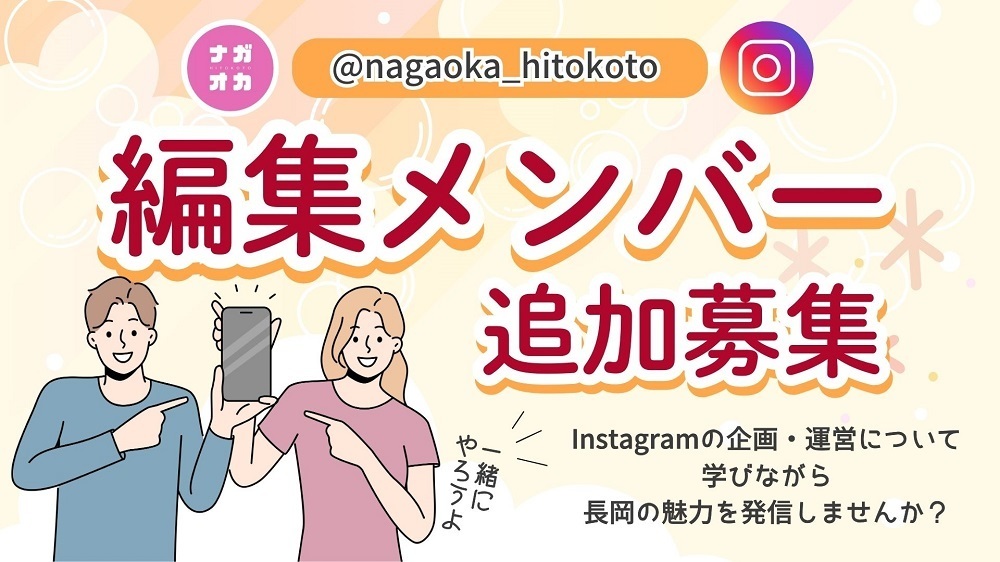 若者向けInstagram『ながおかヒトコト』編集メンバー追加募集!