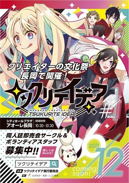 平成30年をもって長岡市での開催がなくなった同人誌即売会の復活イベント。作品の発表の場や、趣味で繋がる地域コミュニティをつくり、長岡を創作活動が盛んな街にするためのクリエイターイベントを開催。