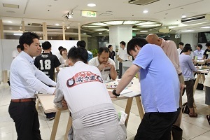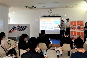 株式会社新潟プロバスケットボール営業本部長早川貴章様から新潟アルビレックスBBの現状と課題をお話しいただいた後、グループに分かれてアイデア発出のワークショップを行いました。