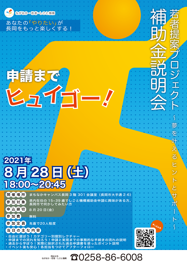 県内在住の15~39歳でしごと機構補助金申請に興味がある方、長岡市で何かしてみたい方