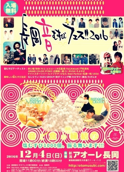 長岡出身のアコースティックデュオ「ひなた」が主催する毎年冬に開催する音楽フェス。長岡の食と音楽の美味しい縁結び。