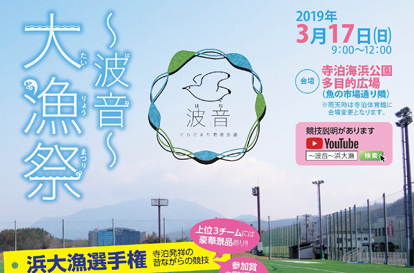 寺泊地域の若者有志による団体「てらどまり若者会議〜波音〜」が中心となって、寺泊地域発祥の「浜大漁選手権」などを行うイベントです。