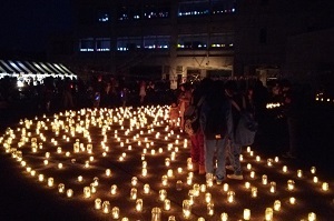 発案者の母校・刈谷田中学校がおよそ5,000個のランプで彩られ、参加者を魅了していました。