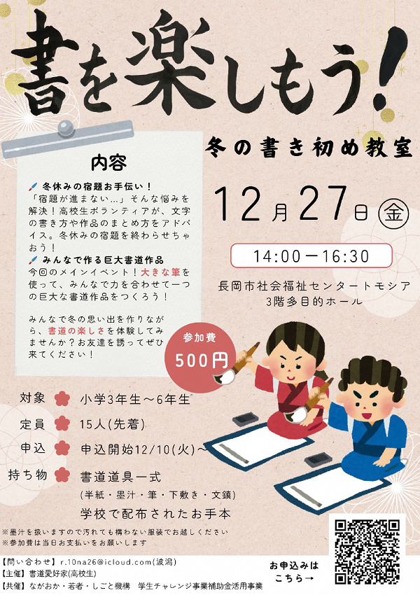 みんなで冬の思い出を作りながら、書道の楽しさを体験してみませんか?