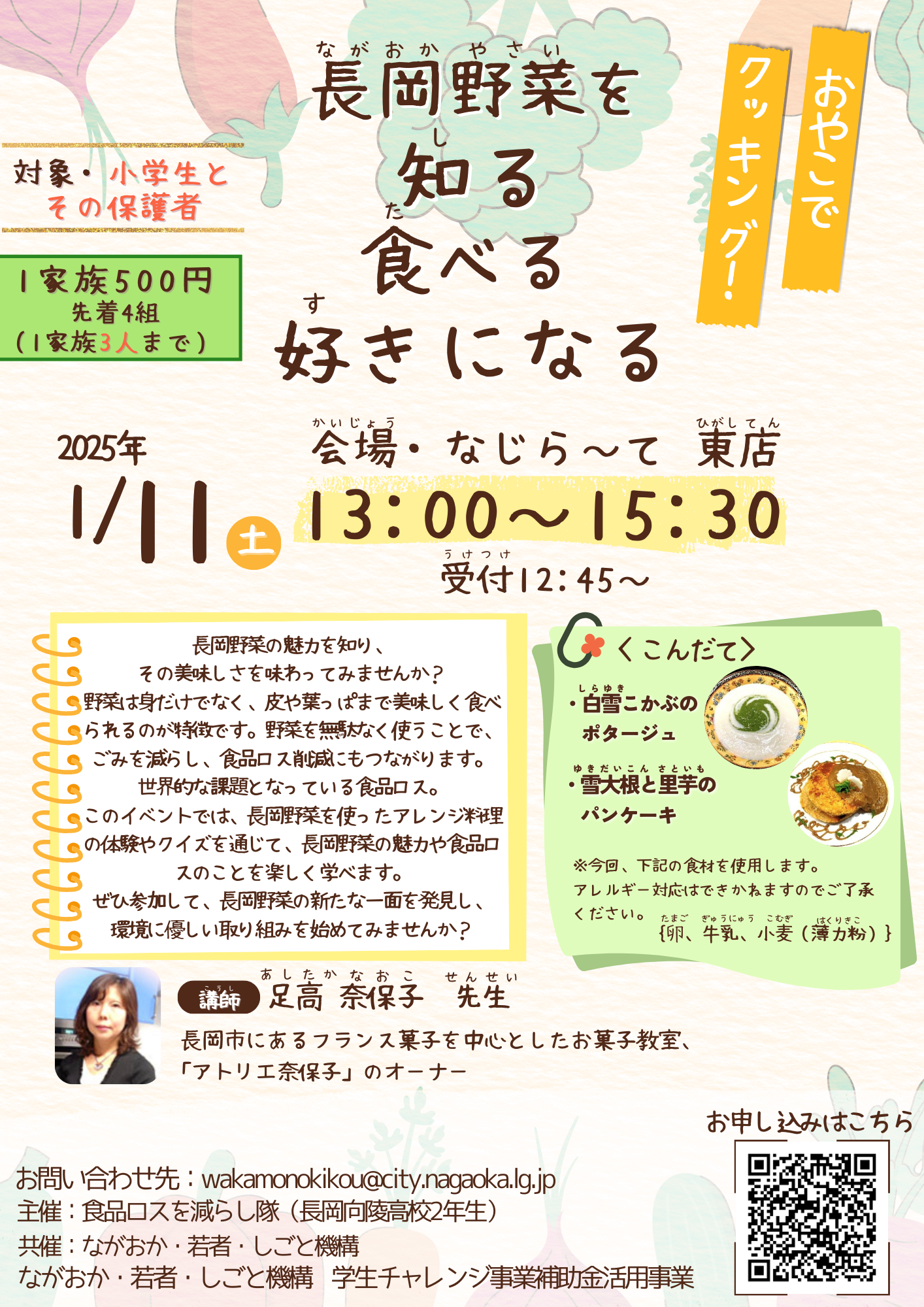 長岡野菜の魅力と食品ロスについて楽しく学びながら、長岡野菜の美味しさを味わってみませんか?