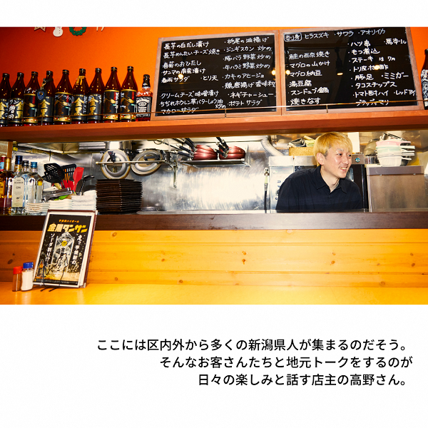 東京で新潟の食材を使った居酒屋を出すのが長年の夢だったというご夫婦が営む、アットホームな居酒屋です。