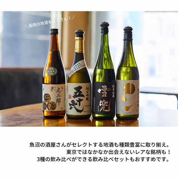 郷土料理をはじめ、種類豊富な地酒など新潟の味も存分に楽しめます。