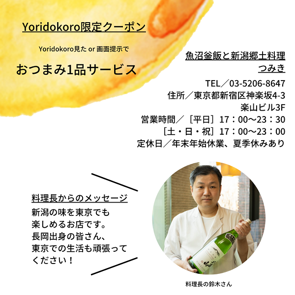 Yoridokoro vol.4 魚沼釜飯と新潟郷土料理 つみき