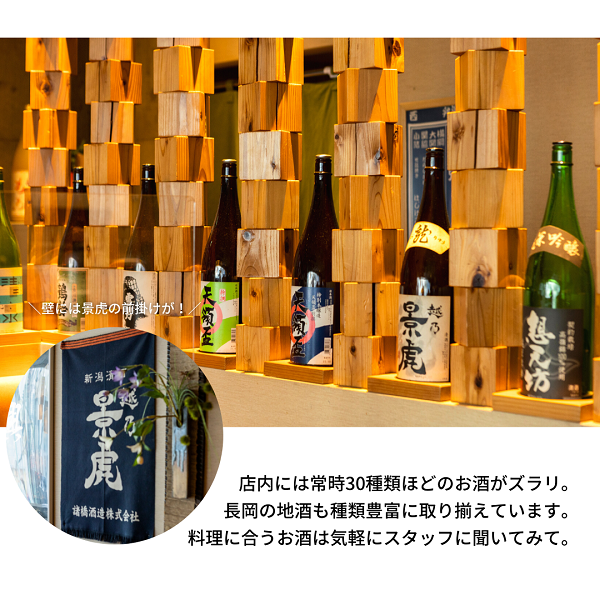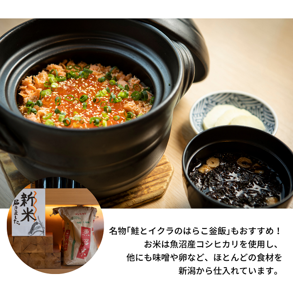 おつまみから釡飯のお米、味噌や卵など、ほとんどの食材を新潟から仕入れています。