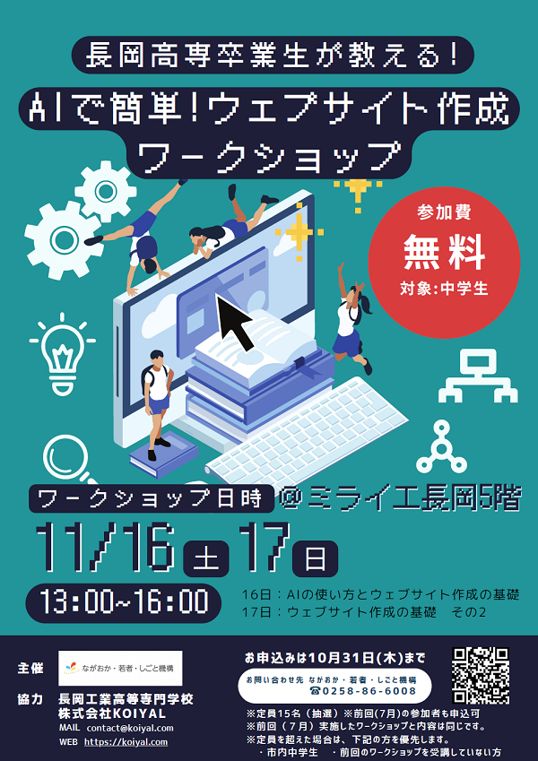 2024年 11月 16日 (土 )、 17日(日)ミライエ長岡5階で「AIで簡単!ウェブサイト作成ワークショップ」を開催しました!