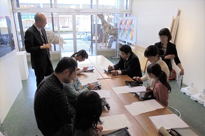 講師は長岡アイティ事業協同組合と市民有志をお招きし、使用機器は長岡市出身のプログラマー清水亮氏(株式会社UEI)から提供いただいた、同氏が開発した手描きタブレットenchantMOONを使用。