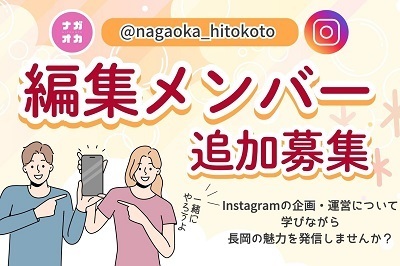 長岡で活躍するヒト・コトを若者が紹介するInstagram「ながおかヒトコト( https://www.instagram.com/nagaoka_hitokoto )」が動きはじめました!是非フォローしてご覧になり、応援してくださいね!