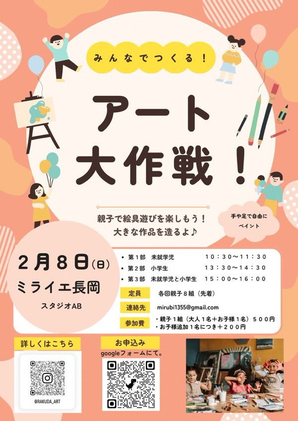 子どもと一緒に体を使って、お家ではできないダイナミックなアート遊びを楽しみませんか?