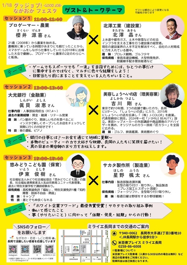 長岡で働くセンパイのお仕事の話をリアルで聞けるChance‼