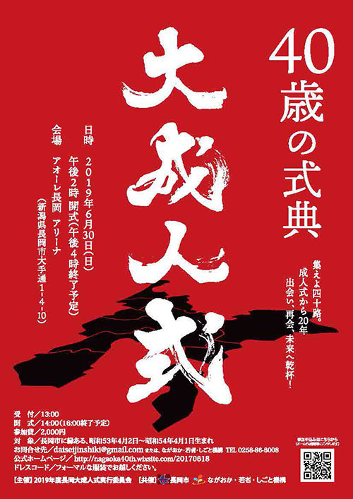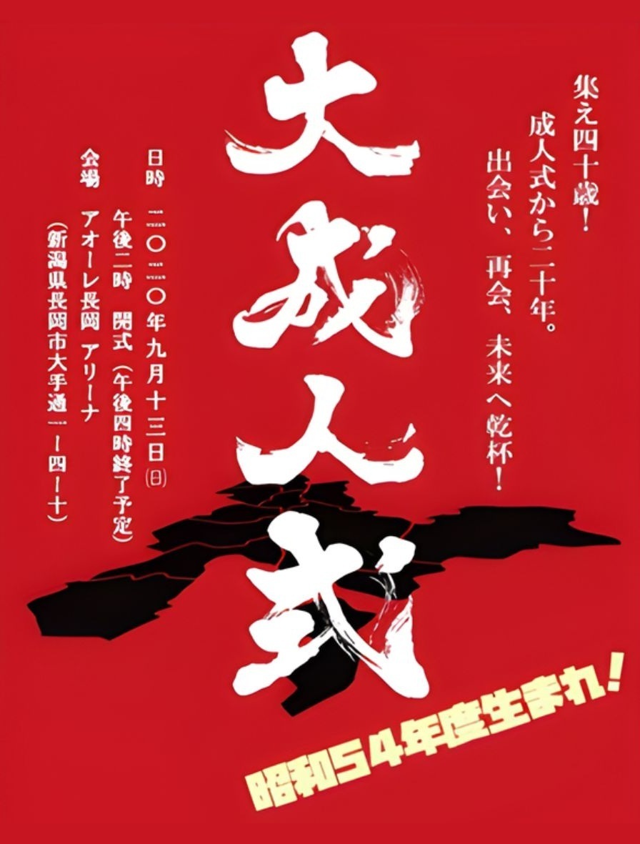 集え四十歳!成人式から二十年。出会い、再会、未来へ乾杯!