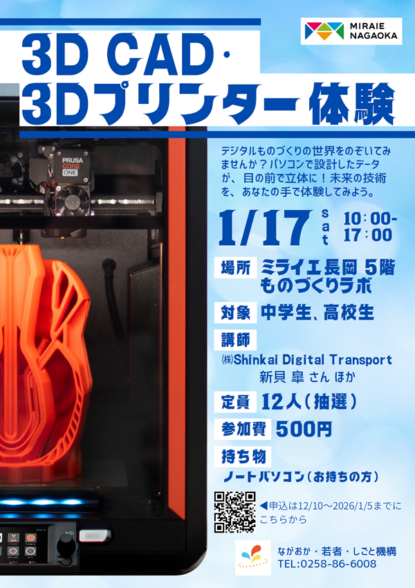 デジタルものづくりの世界をのぞいてみませんか?パソコンで設計したデータが、目の前で立体に!未来の技術を、あなたの手で体験してみよう。